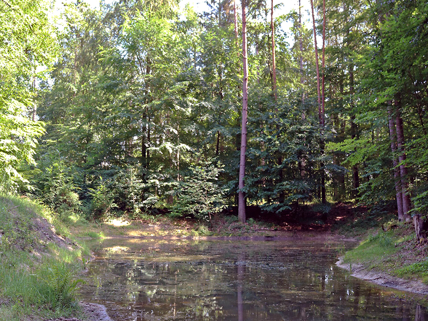 Zum Teil stark zugewachsen und verlandet, drohten die Gewässer ihre Funktion als Lebensraum für Amphibien zu verlieren. Aus dem kleinen Waldweiher im Distrikt Sauhag wurden im vergangenen Herbst etliche Kubikmeter Schlamm entfernt. „Die Ertüchtigung des Gewässers war dringend notwendig zur Erhaltung des Lebensraumes der hier lebenden Kammmolch- und Springfroschpopulation“, erklärt Förster Christof Hilgers. Am Stillgewässer Wüstenbrünnlein in Sindolsheim sah es nicht besser aus. Neben der Entschlammung wurde an der Nordseite des Gewässers eine steile Böschung abgetragen und eine Flachwasserzone angelegt.