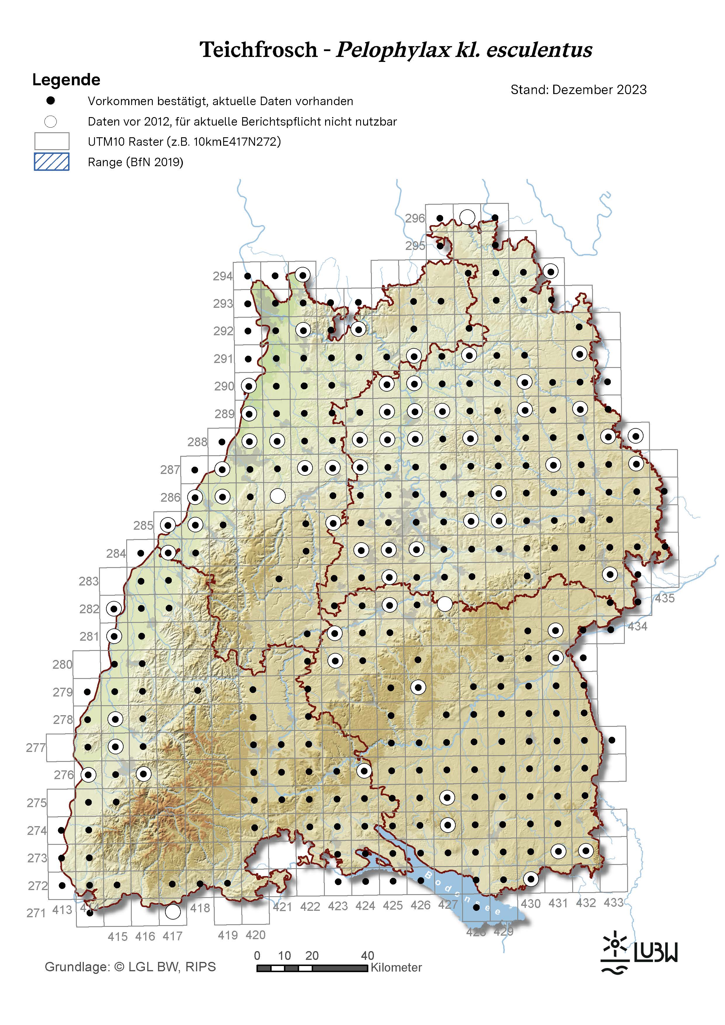 Hinweis: Im Zusammenhang mit dem FFH-Bericht wird das vom Bundesamt für Naturschutz (BfN) verwendete Synonym Rana kl. esculenta als wissenschaftlicher Artname verwendet.
