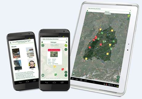 Wer die Umweltmeldestelle informieren möchte, kann dies ab sofort auch direkt vom Ort der festgestellten Umweltbeeinträchtigung über die von der LUBW Landesanstalt für Umwelt, Messungen und Naturschutz Baden-Württemberg im Auftrag des Umweltministeriums entwickelte App „Meine Umwelt“ machen. Nutzer des Betriebssystems Android finden die App bei Google play, für iOS im Apple App Store und für Windows Phone 8 im Windows Phone Store. Die mobile App ist kostenlos und werbefrei.