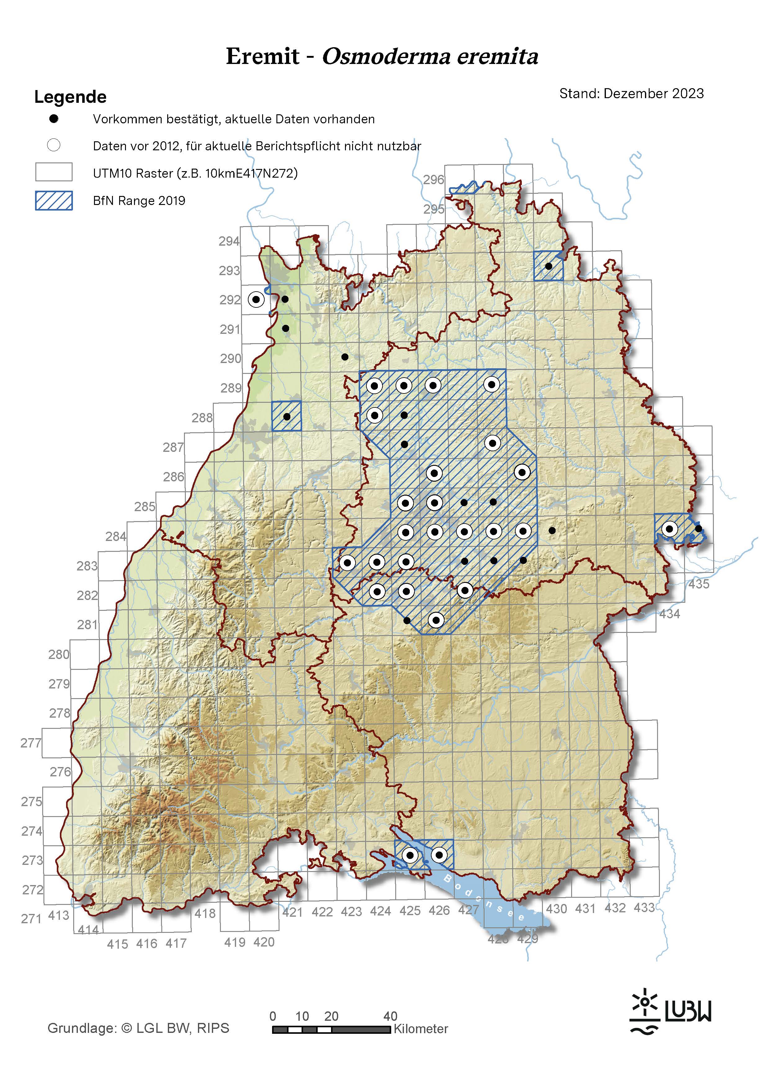 Eine Karte der FFH-Gebiete mit Vorkommen des Eremiten und weitere Informationen zu den Gebieten erhalten Sie im Daten- und Kartendienst der LUBW.