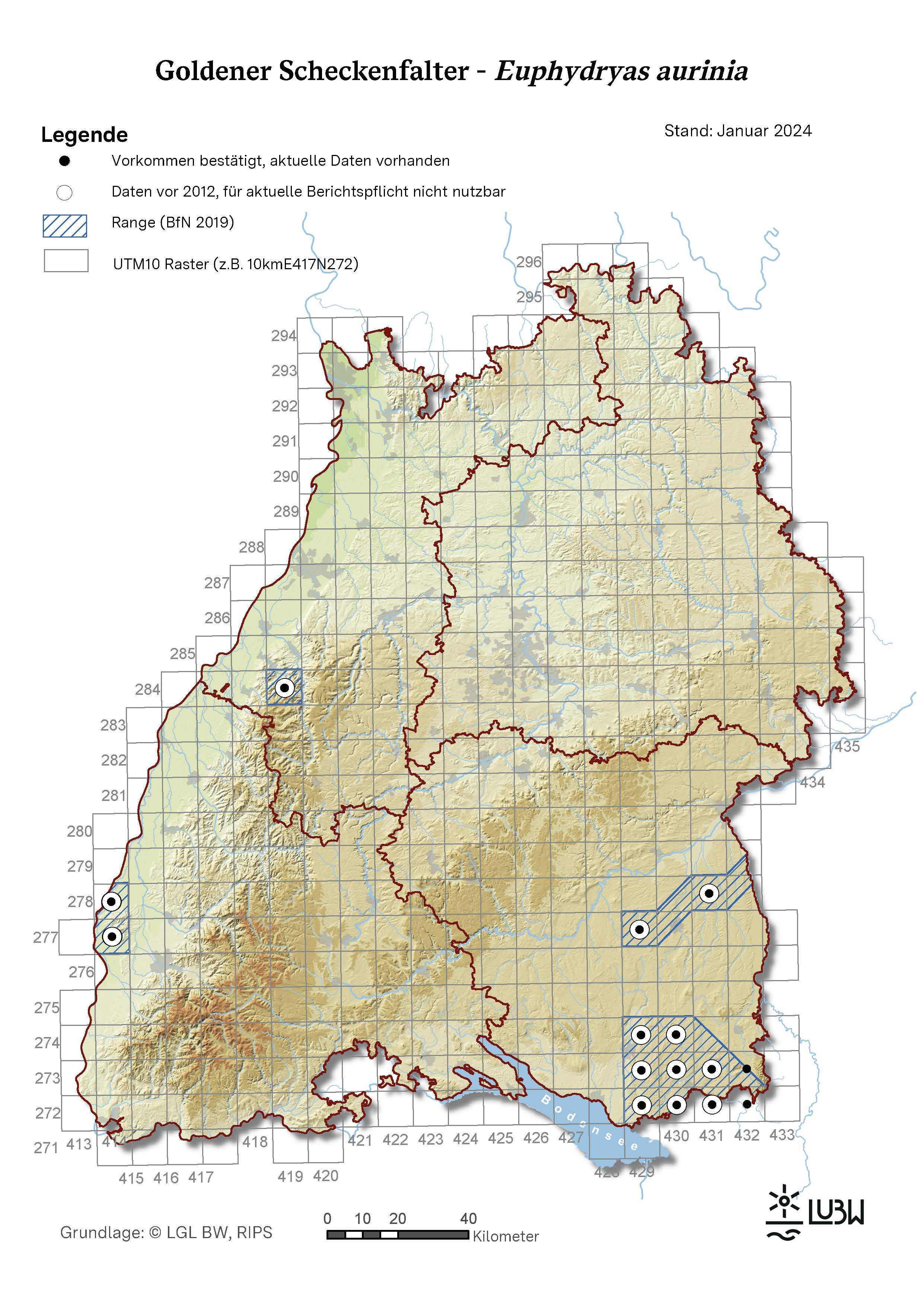 Eine Karte der FFH-Gebiete mit Vorkommen des Goldenen Scheckenfalters und weitere Informationen zu den Gebieten erhalten Sie im Daten- und Kartendienst der LUBW.