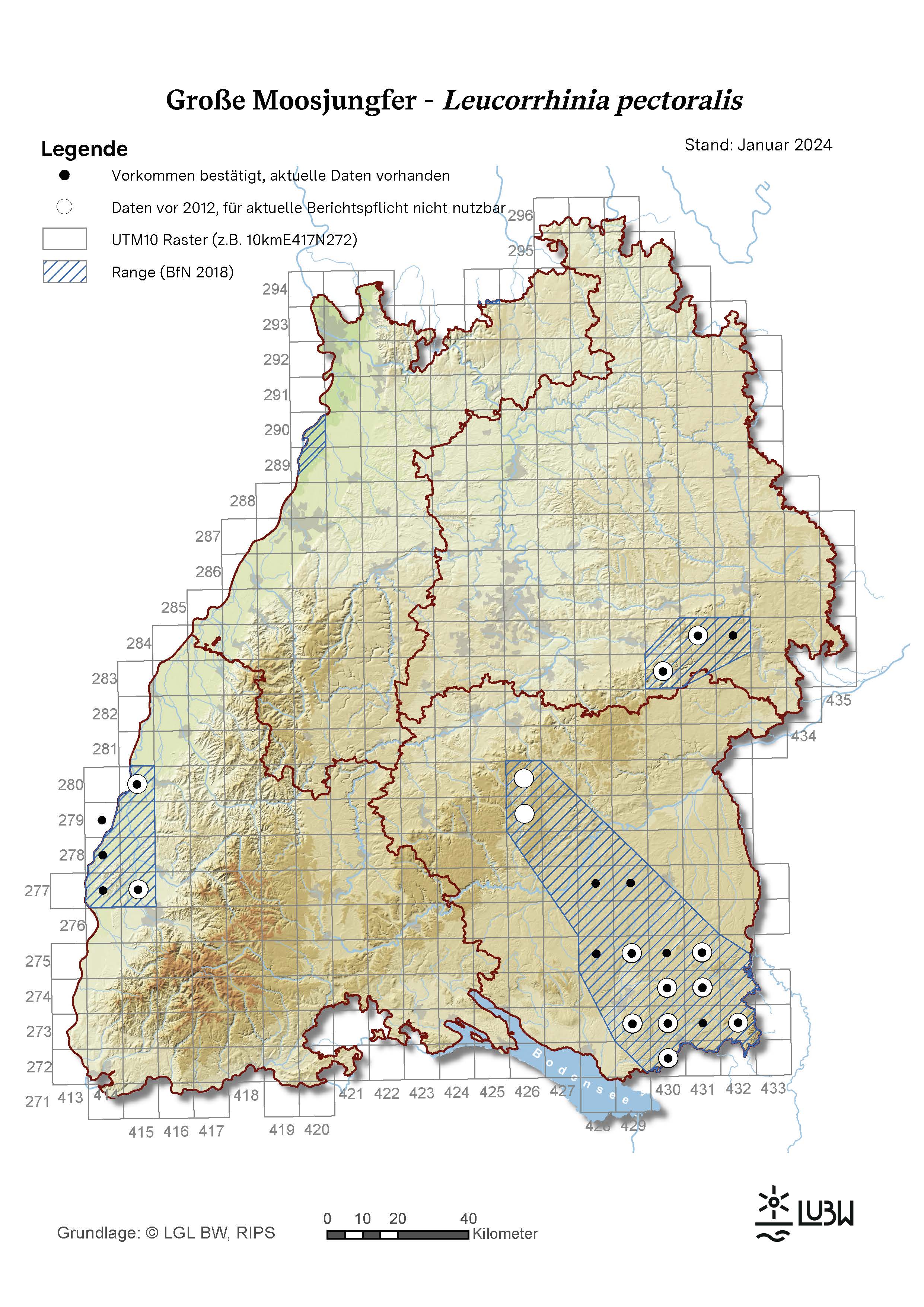 Eine Karte der FFH-Gebiete mit Vorkommen der Großen Moosjungfer und weitere Informationen zu den Gebieten erhalten Sie im Daten- und Kartendienst der LUBW.