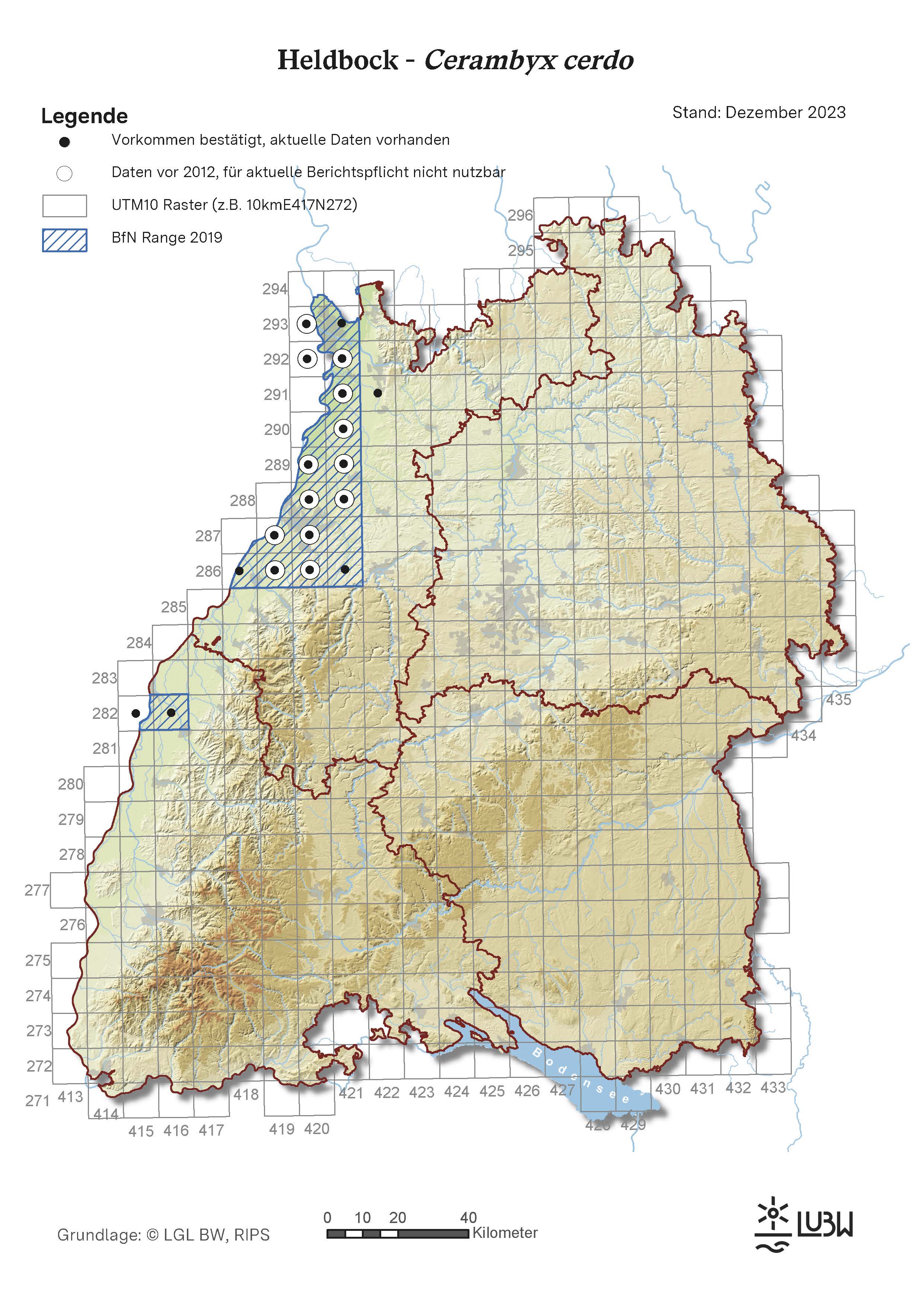 Eine Karte der FFH-Gebiete mit Vorkommen des Heldbocks und weitere Informationen zu den Gebieten erhalten Sie im Daten- und Kartendienst der LUBW.