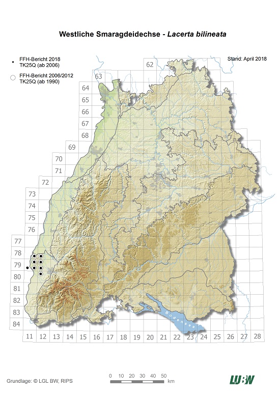 Für die Westliche Smaragdeidechse als Art des Anhangs IV, werden im Rahmen der FFH-Richtlinie keine Schutzgebiete ausgewiesen.