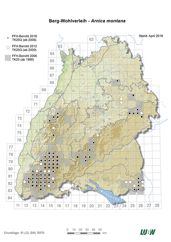 Für die Arnika, als Art des Anhangs V, werden im Rahmen der FFH-Richtlinie keine Schutzgebiete ausgewiesen.