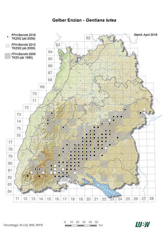 Für den Gelben Enzian, als Art des Anhangs V, werden im Rahmen der FFH-Richtlinie keine Schutzgebiete ausgewiesen.