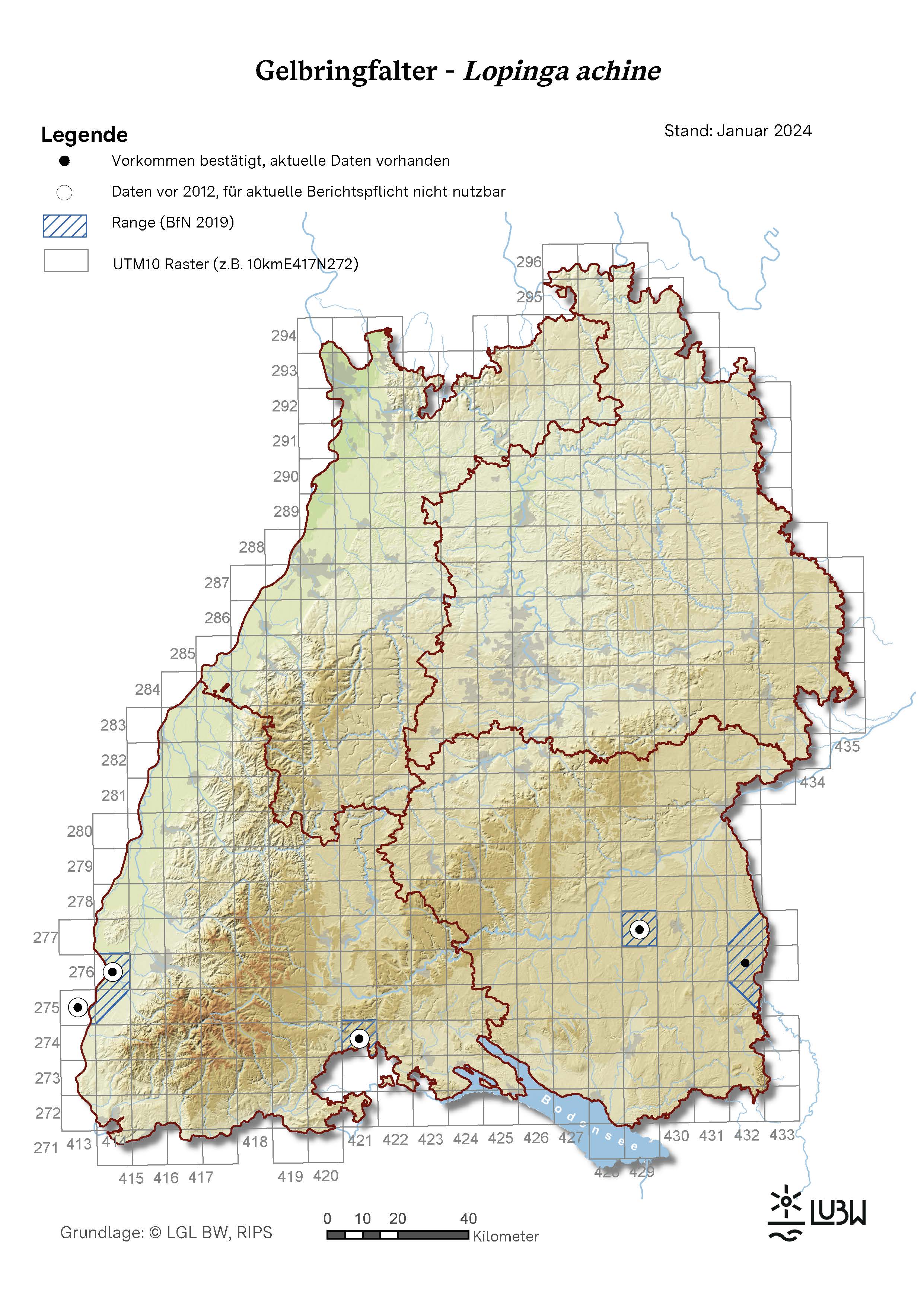 In Baden-Württemberg gibt es nur noch Vorkommen am südlichen Oberrhein (Hauptvorkommen), in Oberschwaben und auf der Baaralb.