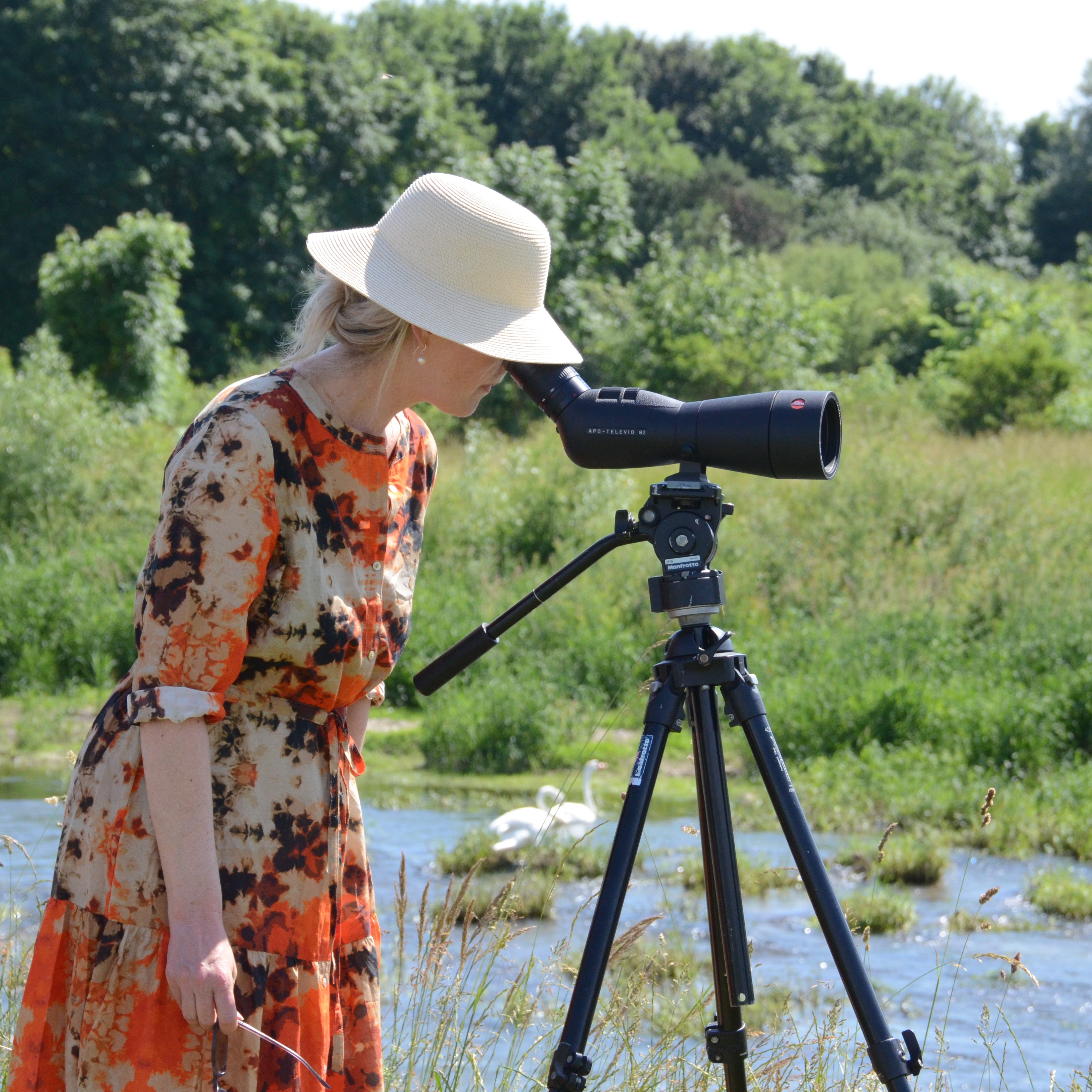 Foto zeigt: Umweltministerin Thekla Walker (links) und LUBW-Präsidentin Eva Bell (rechts) setzen sich für das Monitoring seltener Brutvögel ein. Vororttermin mit Medienvertretern in Binzwangen bei Ertingen. Quelle: LUBW