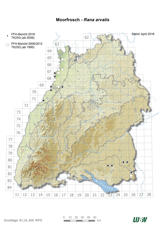 Noch Anfang des 20. Jahrhunderts reichte das Vorkommen am Oberrhein südlich bis Basel. In Oberschwaben verschwanden viele Vorkommen in den letzten 30 Jahren. Der Trend der derzeit noch vorhandenen Bestände kann weiterhin als stetig abnehmend beurteilt werden.