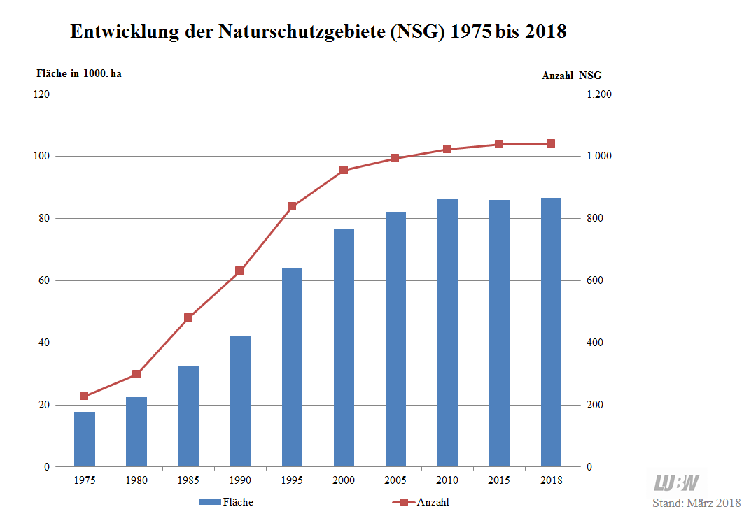 Entwicklung der Naturschutzgebiete (NSG) 1975 bis 2018 – Stand: März 2018