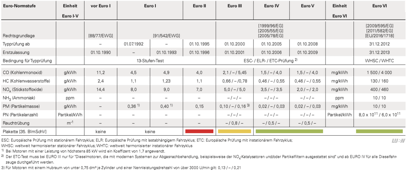 Die Abgasgrenzwerte für schwere Nutzfahrzeuge wurden in der EU in den vergangenen Jahren deutlich reduziert: