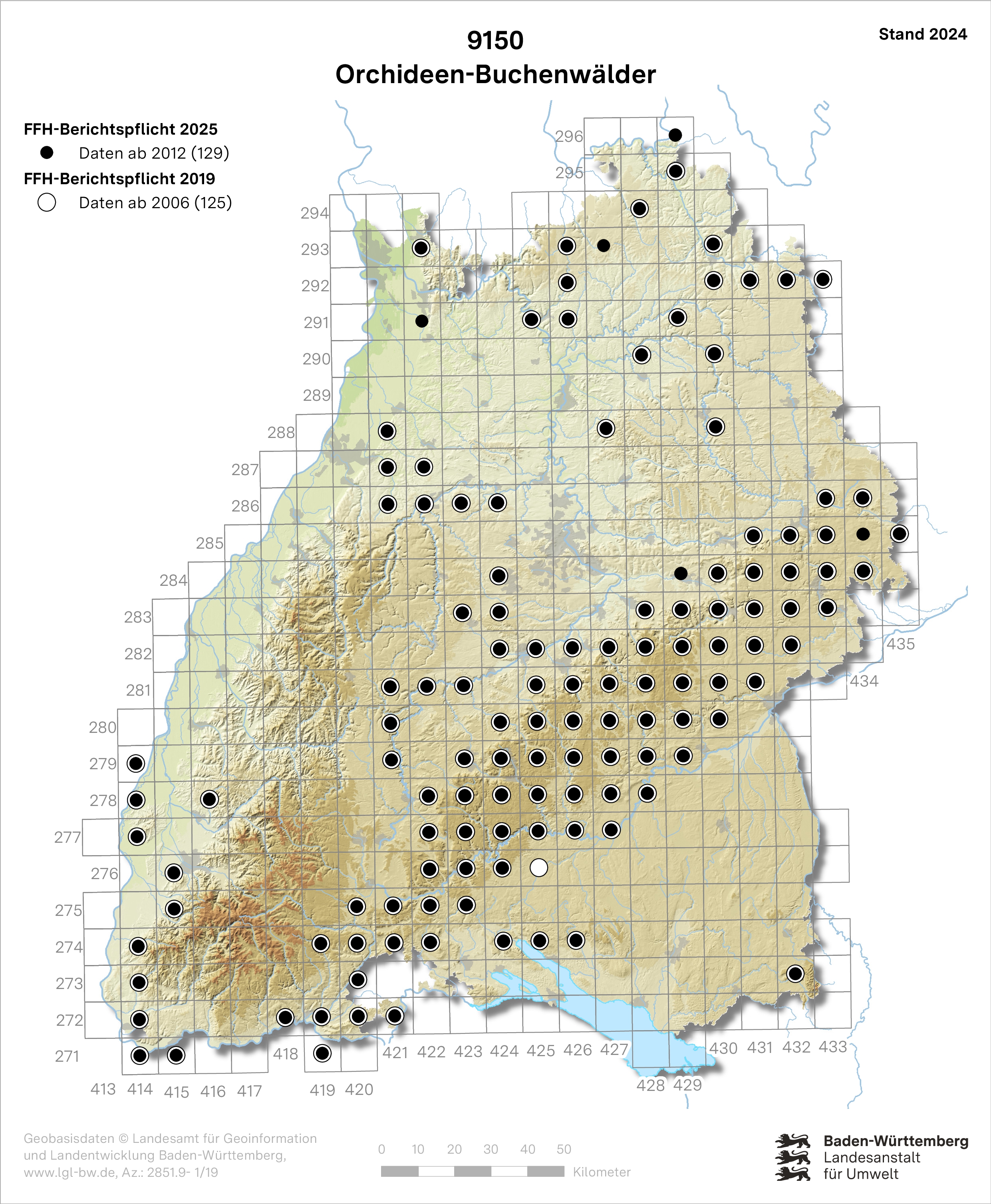 Zwischen 2012 und 2025 waren die Fläche und das Verbreitungsgebiet der Orchideen-Buchenwälder stabil. Die Zukunftsaussichten des Lebensraumtyps in Baden-Württemberg sind als gut einzustufen.