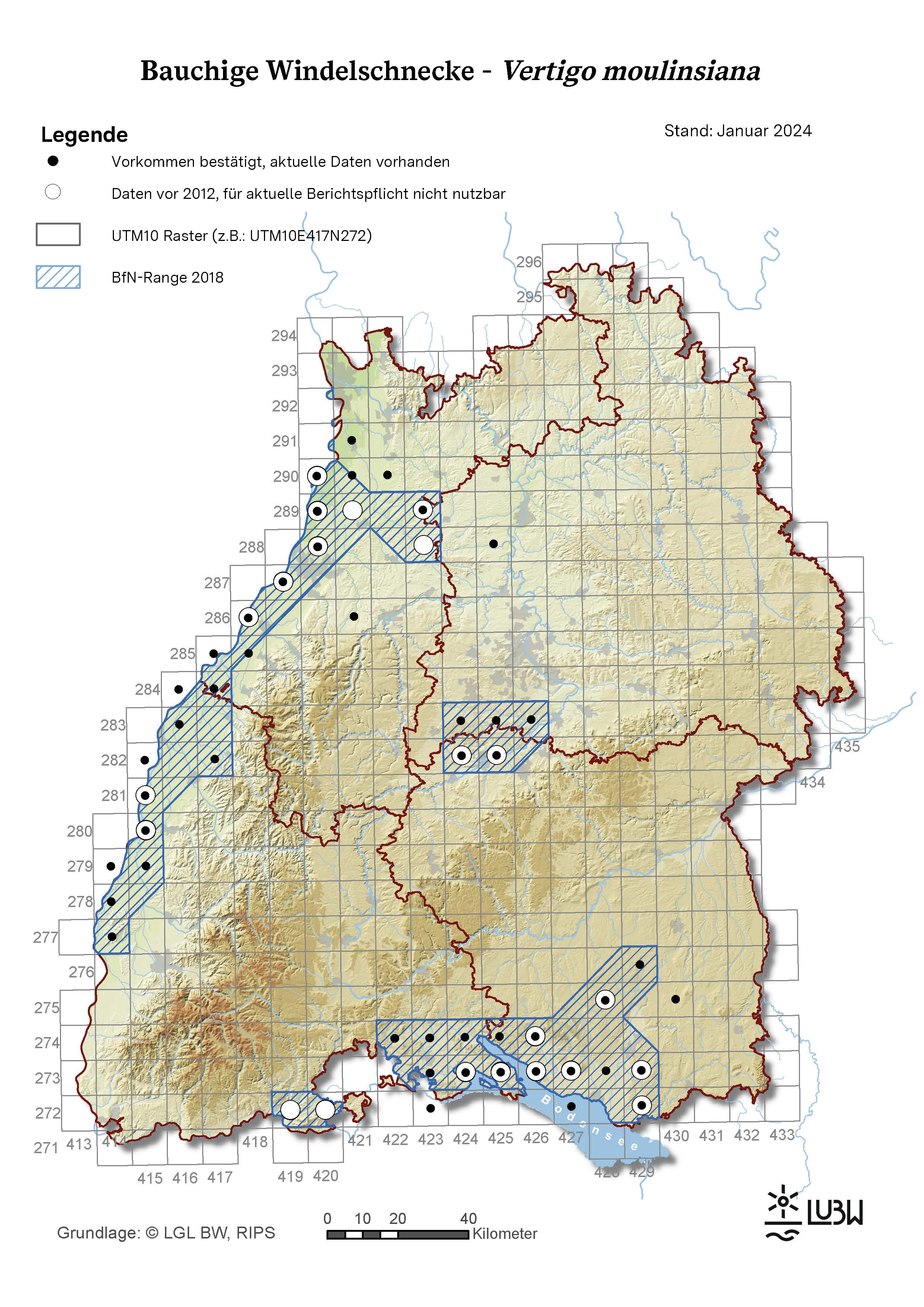 Eine Karte der FFH-Gebiete mit Vorkommen der Bauchigen Windelschnecke und weitere Informationen zu den Gebieten erhalten Sie im Daten- und Kartendienst der LUBW