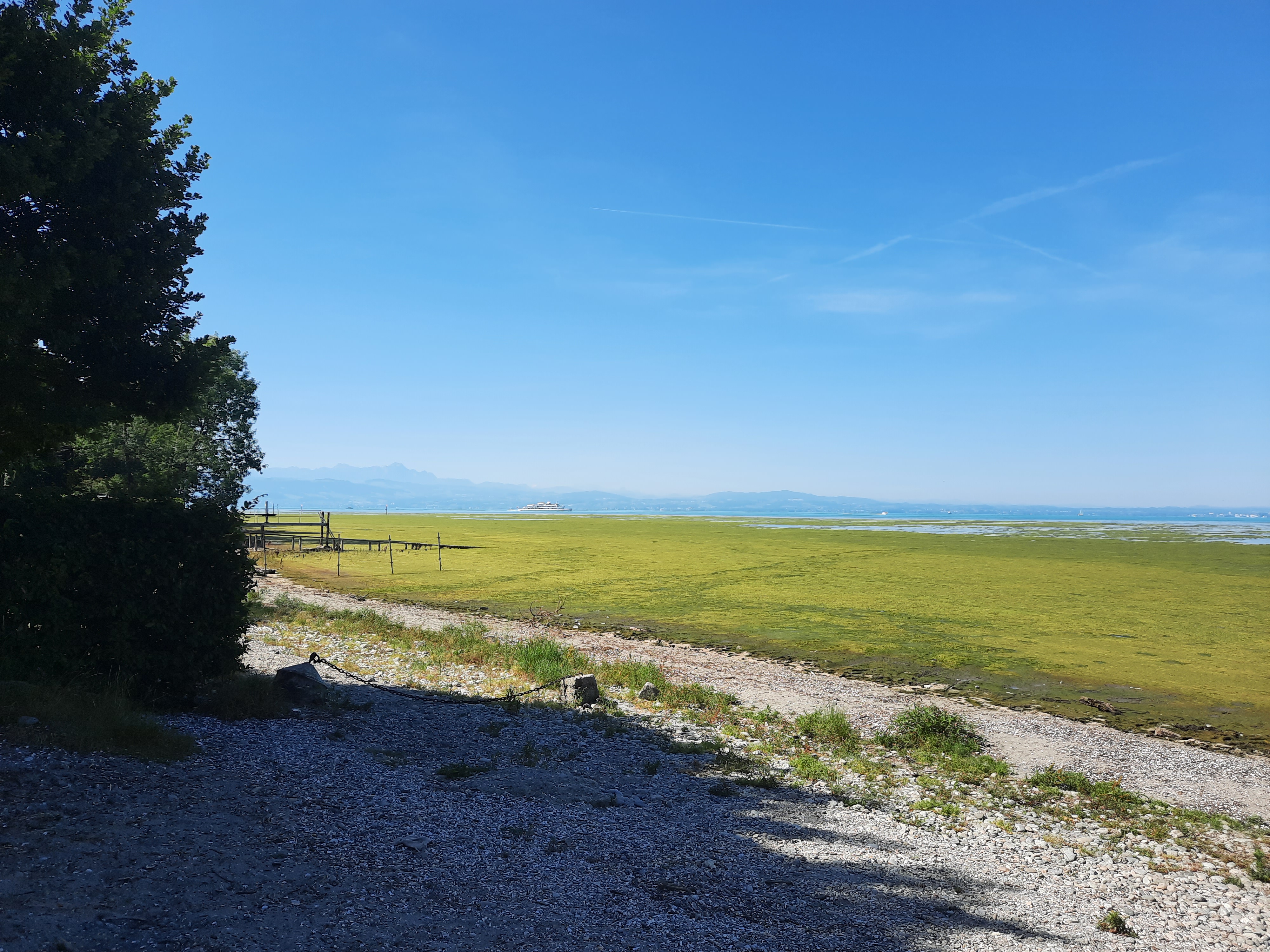 Foto zeigt: Blick auf einen Algenteppich in der Nähe der Schussenmündung. Quelle: LUBW